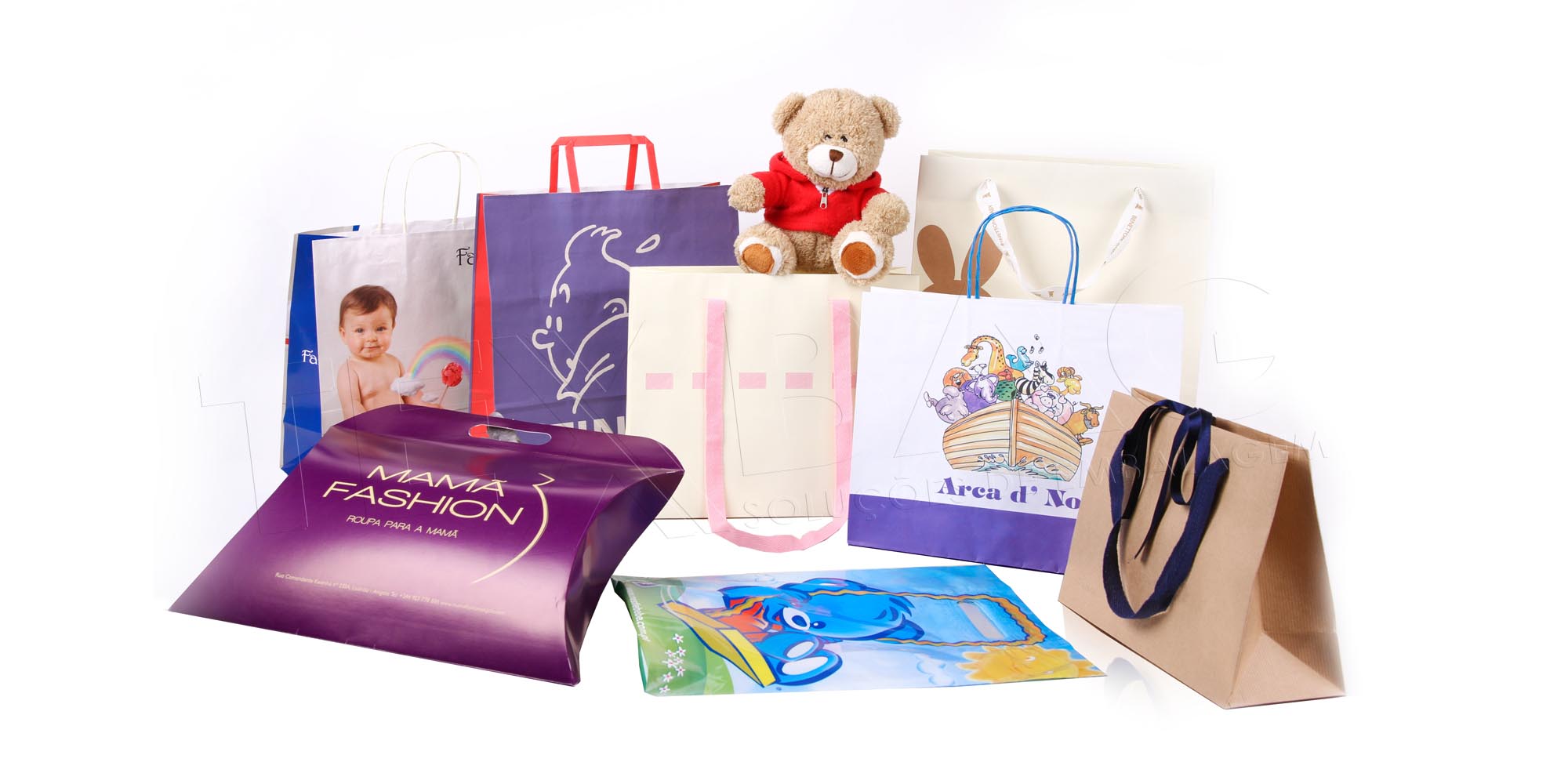 A nossa gama de produtos é variada: Shopping - embalagens para vários segmentos de retalho e marketing; Packaging - embalagens para a indústria alimentar e não alimentar; Gráfico - papel impresso para o seu dia-a-dia; Luxebag - embalagens de qualidade superior; Stock - sacos sem personalização com entregas rápidas.