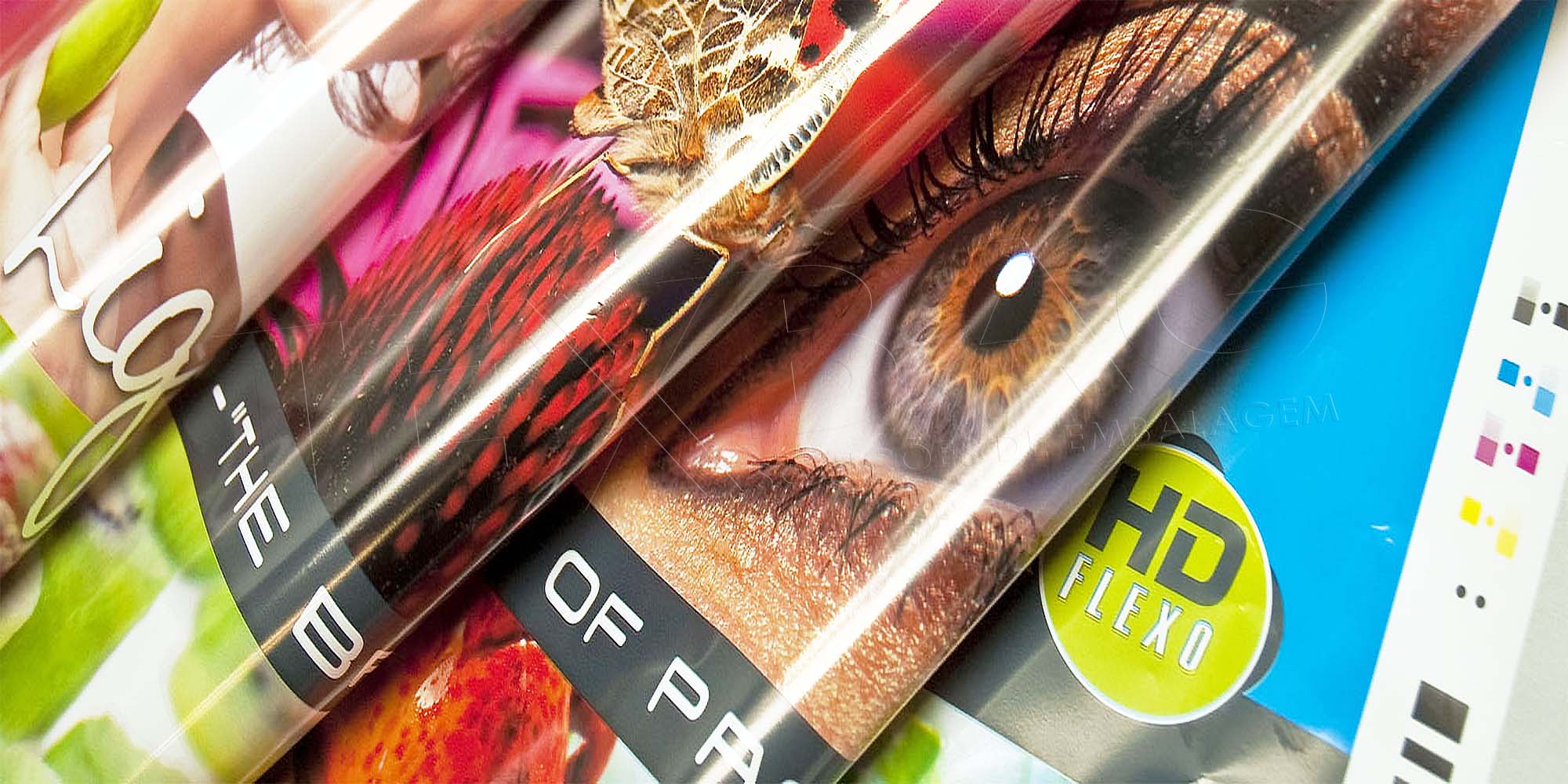 Flexografia até 8 cores; Offset.